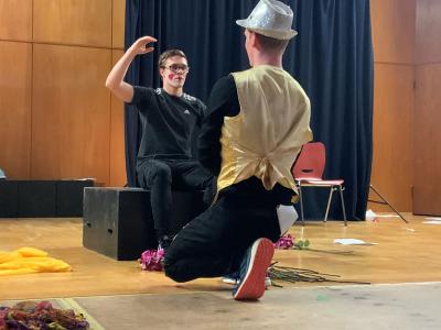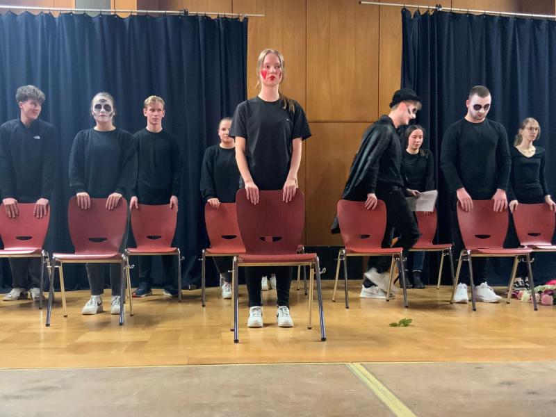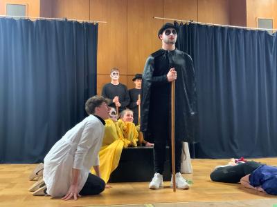 Isabelle Stern und ihre Schüler/innen aus den Jahrgängen 10-13 setzen in ihrer Inszenierung die modernen Techniken des Figuren-Switching und des Figuren-Splitting ein: Die Darsteller können ihre Rollen wechseln, immer wieder andere Schauspieler verkörpern die Personen des Stückes. Auf diese Weise soll die herkömmliche Identifikation des Zuschauers mit den Figuren vermieden und der Fokus auf das Geschehen auf der Bühne gelegt werden.