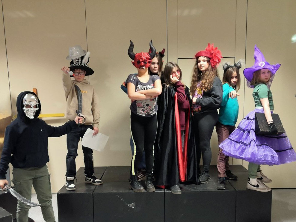 Die fantastische Welt des Theaters endete nicht mit diesem Abend im Gemeindehaus! Am 11. Juni präsentierten unsere jüngeren Schauspieler der Theater-AG im Rahmen des „Theater-Wettbewerbs-Frankfurt“ für junge Talente eine selbsterdachte Gruselkomödie mit dem Namen „Horrorhogwarts – Können Monster und Menschen zusammenleben?“ wiederum nach einem postdramatischen Konzept des modernen Kindertheaters. Harry und Hermine, unsere bekannten Figuren aus „Harry Potter“, müssen sich auf Hogwarts mit Monstern auseinandersetzen, die durch ihre Erfahrungen nicht so gut auf die Menschen zu sprechen sind. Natürlich kam der Humor nicht zu kurz, wenn wir Miss Beauty, der Zauberin, begegnen, für die Schönheit alles ist! Oder auch Miss Frankenstein, die alle politisch korrekt ansprechen möchte. Unsere kleinen SchauspielerInnen der 5. bis 7. Klassen waren zunächst etwas Verhalten in ihrem Spiel, das Lampenfieber hatte um sich gegriffen. Aber nach und nach tauten sie auf und vermittelten mit Witz und Ironie dem Publikum, dass wir alle, ob Monster oder Mensch, nach den gleichen Normen und Werten leben wollen, die ein friedliches Miteinander ermöglichen.