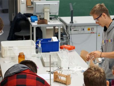 Die Fachbereiche Biologie, Chemie und Physik trugen zum Erfolg des Tages bei und sorgten für eine breite Palette an Aktivitäten, die die Schüler begeisterten und ihre Neugier weckten. Diese interdisziplinäre Herangehensweise bot den Schülern die Gelegenheit, die Verbindung zwischen den Naturwissenschaften zu erkunden und die Vielfalt der verschiedenen Fachbereiche zu erleben. Von Spuren und Beziehungen im Wald über die Optimierung des Karateschlages und das Morphen von Gesichtern, Experimente zum Nachweis von Säure, Gas und Stärke, einem Vakuumversuch konnte am Ende sogar ein kleiner Kriminalfall gelöst und die Frage, ob Schwarz nun eine Farbe ist oder nicht, chromatographisch beantwortet werden.
