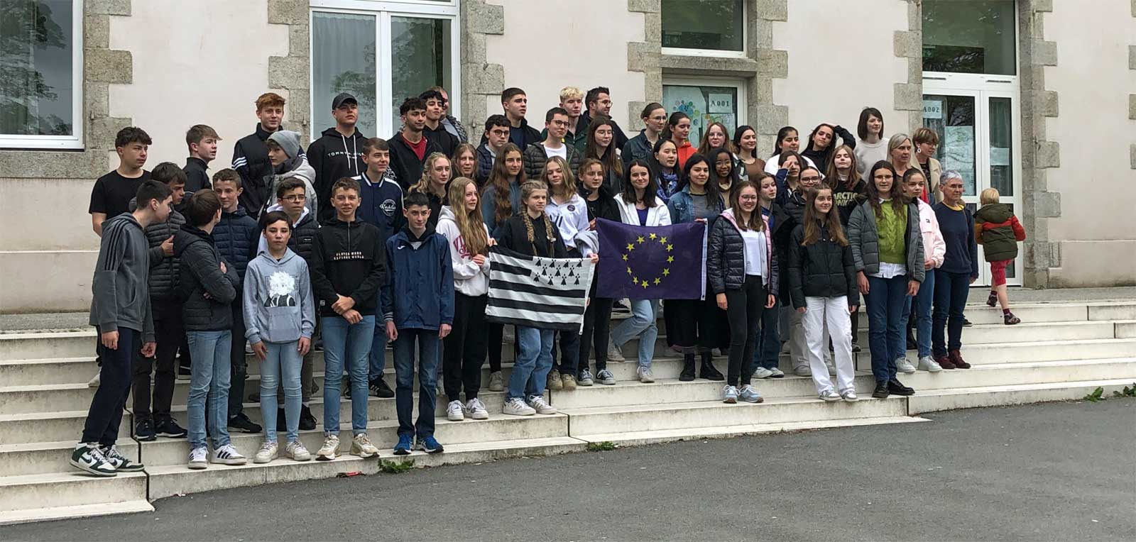 Nach einem Zwischenstopp mit Übernachtung in Paris, bei dem der Eiffelturm und die Champs-Élysées besichtigt wurden, kamen die Schüler der Rhenanus-Schule am 7. Mai gegen 15:30 Uhr an der Sankt Joseph Schule in Landivisiau an. Hier wurden alle recht herzlich von der Schulleitung und ihren Austauschpartnern mit einem leckeren Kuchenbuffet begrüßt.