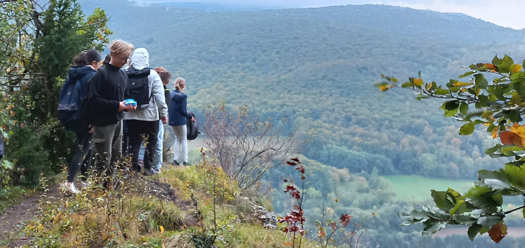 Am vergangenen Freitag den 13. Oktober erlebte die Klasse G7a einen abwechslungsreichen Wandertag, der von Freude, natürlicher Schönheit, herbstlich wechselhaftem Wetter und einem bemerkenswerten Engagement geprägt war. Die Schülerinnen und Schüler hatten zweifelsohne ihren Spaß und erlebten einen anstrengenden aber schönen Tag in der Natur.