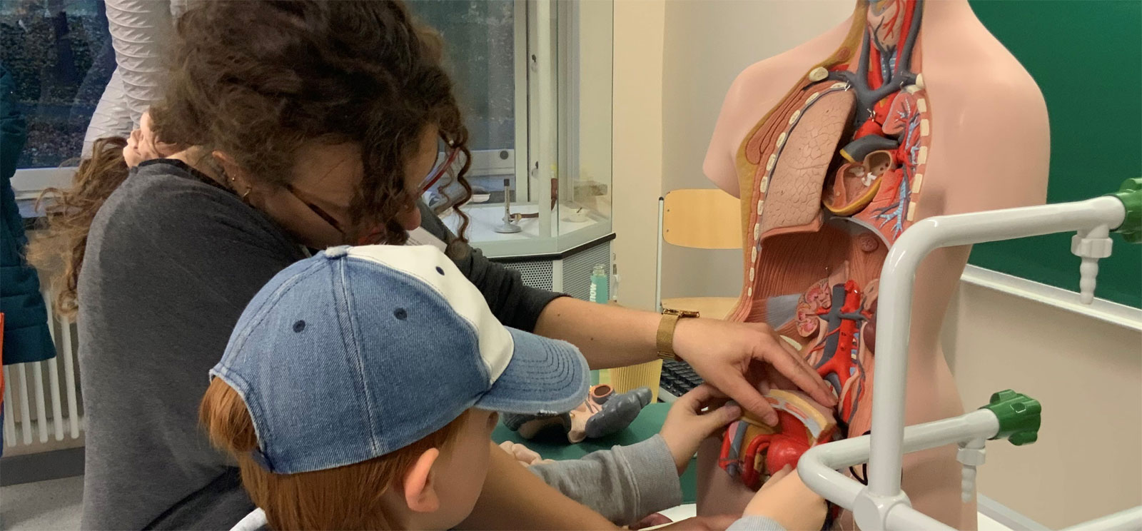Ebenfalls durch Probieren lässt sich im Biologie-Raum der Aufbau der Organe im menschlichen Körper ermitteln: Dazu kann der Besucher an einer menschlichen Figur organische Operationen vornehmen, ganz schmerzbefreit.