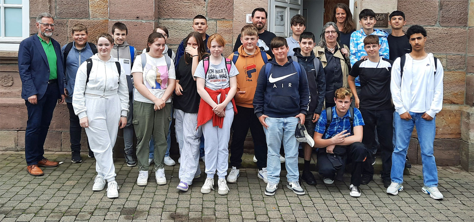 Die Nürnberger Rassengesetze werden in dem Buch ebenso thematisiert wie die Pogromnacht. Dadurch dass in dem Buch ein Einzelschicksal beschrieben wird, konnten sich die Schülerinnen und Schüler gut in die Situation des Protagonisten hineinversetzen. Die Auseinandersetzung mit dem Thema ,,Nationalsozialismus” warf viele Fragen auf. Da lag es nahe, die Synagoge in Abterode zu besuchen und zwei Experten zu befragen.