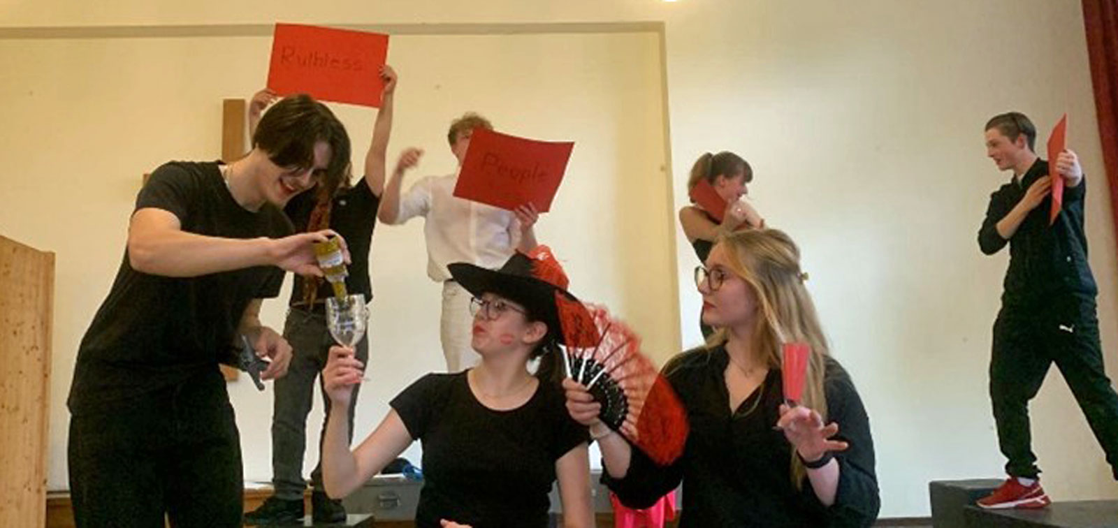 Der DS-Kurs der Q2 präsentierte sein Theaterstück im Rahmen seiner spielpraktischen Prüfung: „Emilia Galotti – Wer ist Emilia?“ am 5. Juni im Gemeindehaus der St. Crucis -Kirche nach dem Drama „Emilia Galotti“ von Lessing nach dem postdramatischen Konzept. Das Drama erzählt von der Bürgerlichen Emilia Galotti, die den Grafen Appiani heiraten soll.