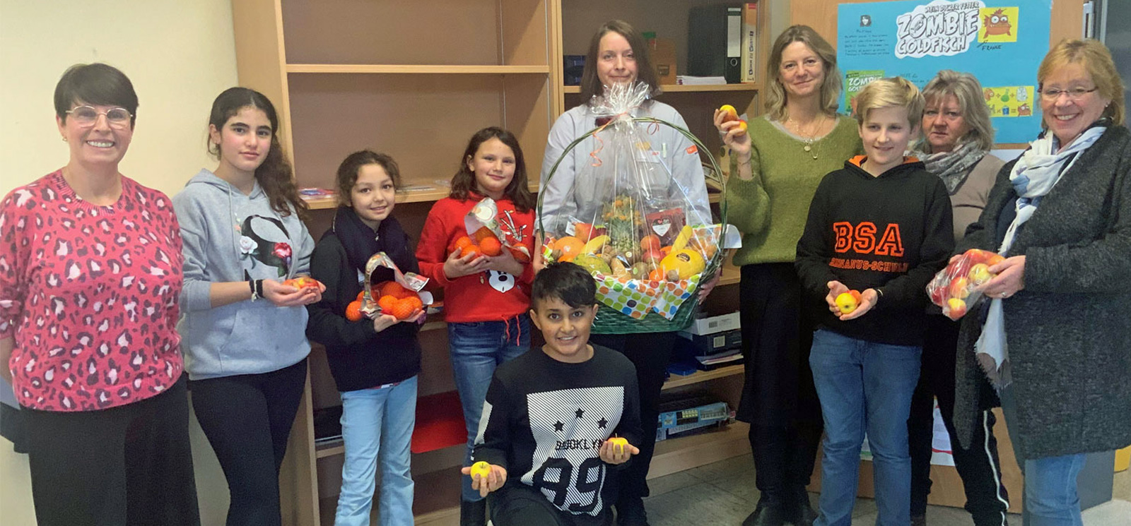 Claudia Mehmel und Martina Pfordt-Vaupel wie auch die anderen Mitglieder des Fördervereins der Schule waren – wie schon so oft - schnell für eine Gemeinschaftsaktion zu haben: Zunächst lobten sie eine Anschubfinanzierung aus, mit der pro Woche 40 bis 50 Stück Obst für die „gesunde Pause“ in der Nachmittagsbetreuung gesichert wurden.